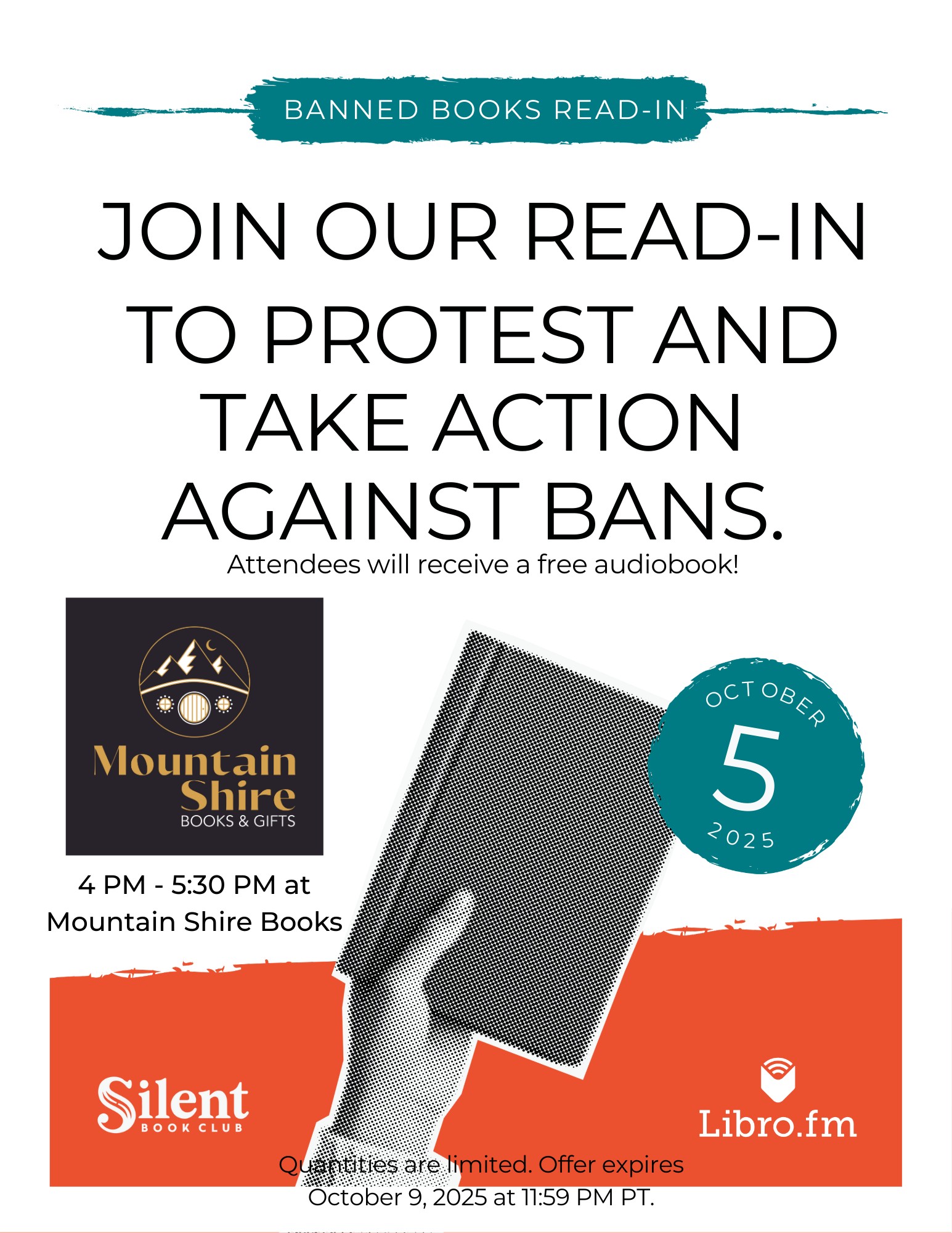 Mark your calendars for Sunday, October 5th! Mountain Shire Books will be kicking off Banned Books Week with a Silent Book Club Read-In to protest against book bans. This year's theme is Censorship is so 1984, and we invite you to raise awareness with us to the current efforts to ban books and information across the country. The #BannedBooksWeek theme reminds us that the right to read belongs to all of us. […]